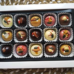 Šokolado gaminiai iš aukščiausios kokybės, geros sudėties ir puikaus skonio belgiško šokolado (prekės ženklas – Callebaut).